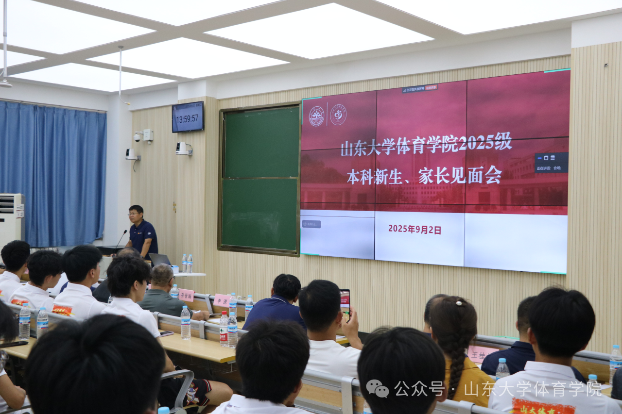 会上,院长孙晋海教授代表全院师生对新生及家长的到来表示热烈欢迎。他围绕山大体育简史、事业发展成效及学院未来规划三个维度展开介绍,帮助新生和家长全方位、深层次地认识山大体育。
